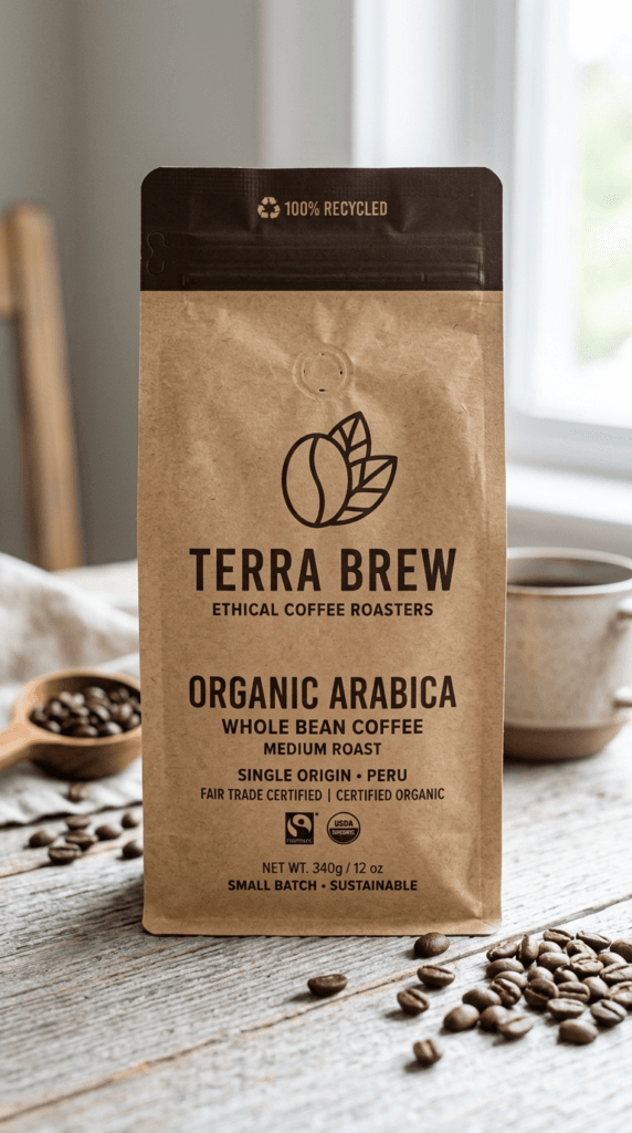フェアトレードの「エシカルコーヒー豆」用パッケージデザイン例